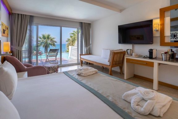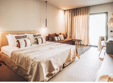 Looking for a gorgeous Greek getaway? Look no further. Insta-worthy backdrops are guaranteed at this beach-chic beauty. Spend your days lounging poolside or working up a sweat in the gym, and evenings sipping signature cocktails at the bar. Live DJs high on the list? You’ll find those here too.