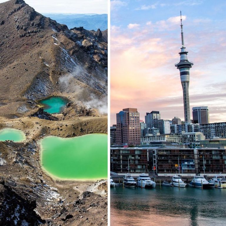 Highlights: Rotorua (geothermal pools and Maori cultural experiences), Waitomo Caves (glowworms), Auckland (harbour city attractions), Wellington (capital city with arts and dining).